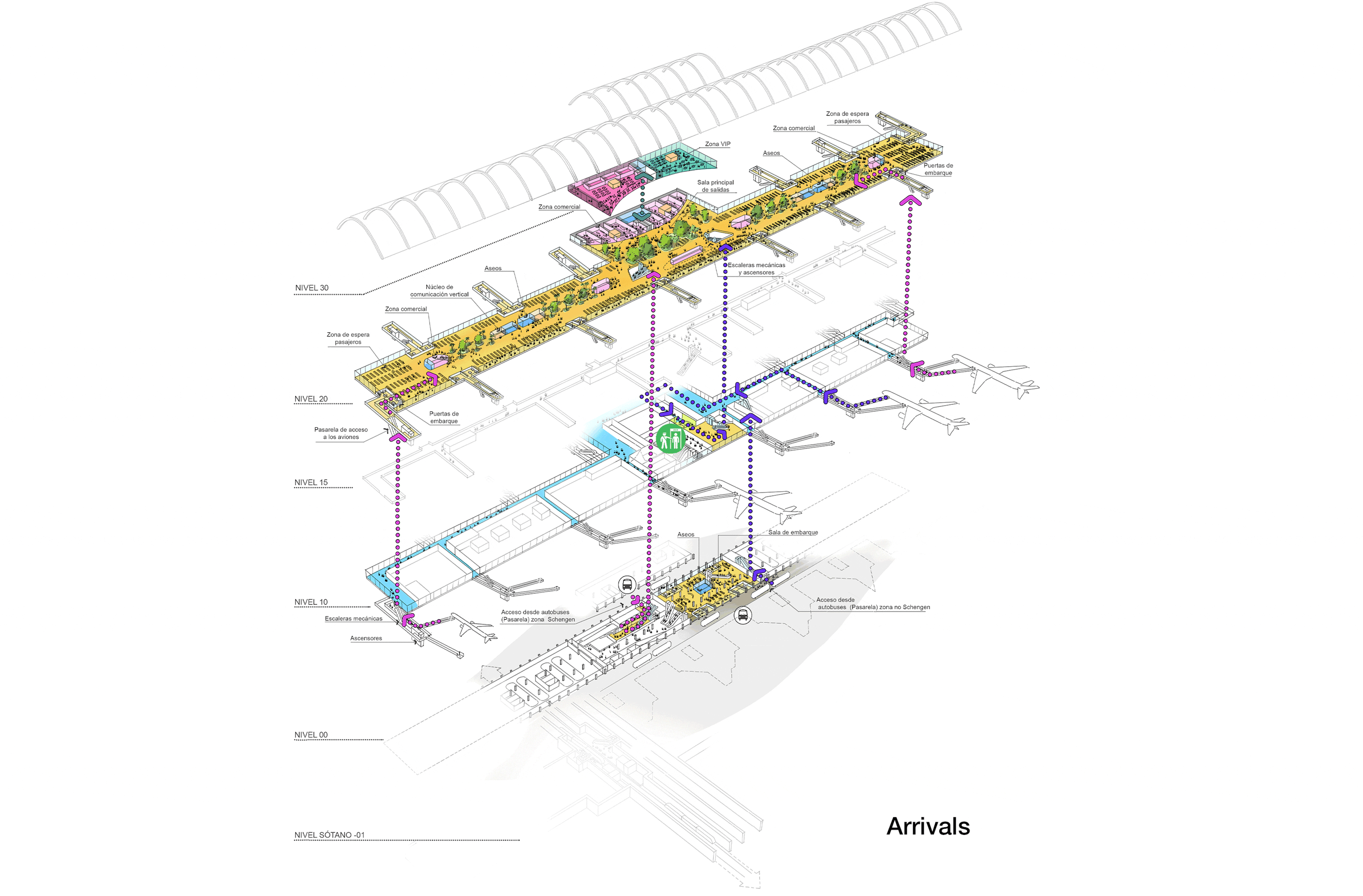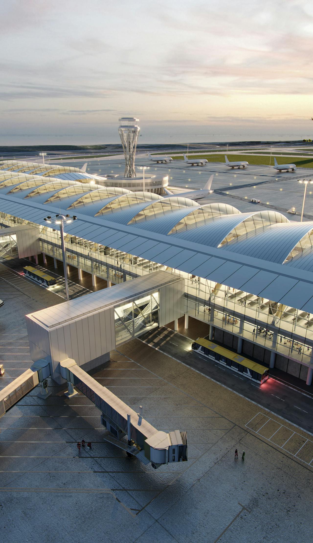 A highly flexible and adaptable terminal design is vital to support the airport’s long-term growth. Rigorous analysis underpins our simplified layout - beneath a roof inspired by Gaudi – which optimises efficiency in terms of aircraft, passenger and baggage movements. The single departures lounge significantly reduces built floor area, while simplifying circulation and maximising commercial revenue potential.