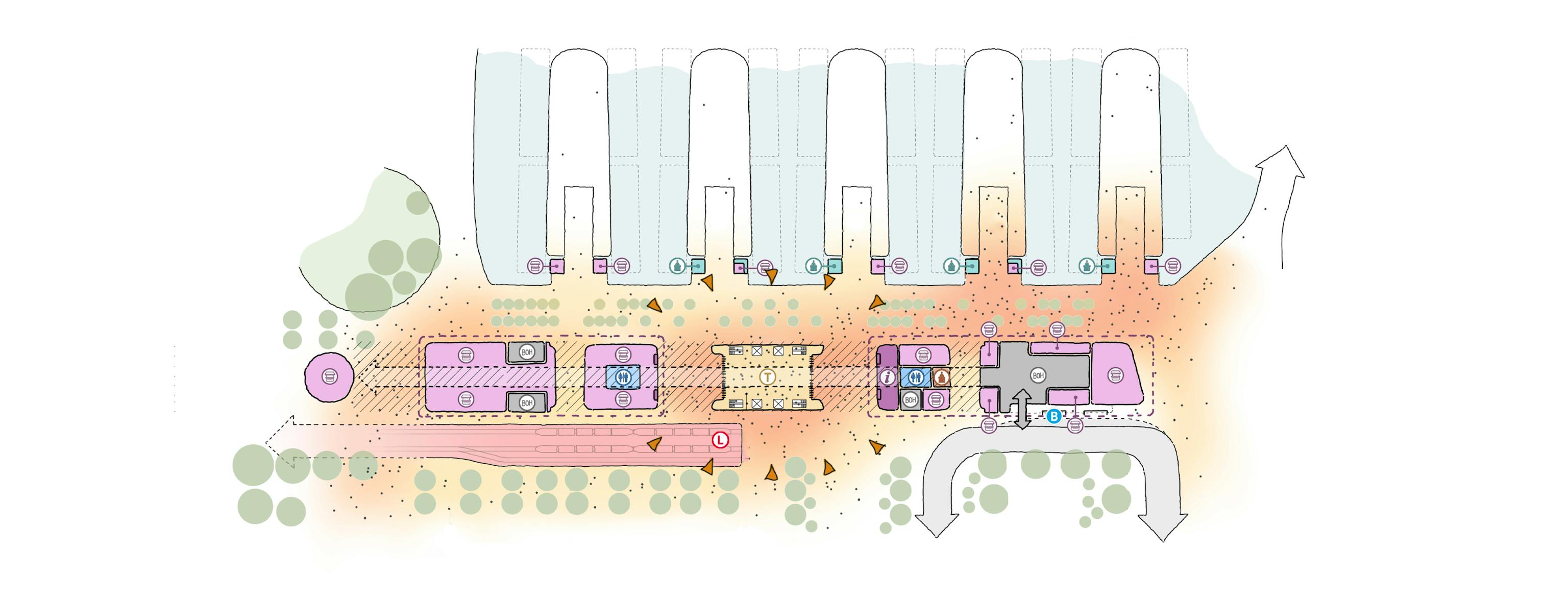 The heritage station structure is preserved and celebrated. Any adaptation works within the imperial structural grid, ensuring cohesion with old and new, while eliminating any significant intrusion or the need for additional structural mass. The entire Quay was de-cluttered, rationalised, and, where needed, widened and enhanced to revitalise and connect the essential spaces of the precinct.