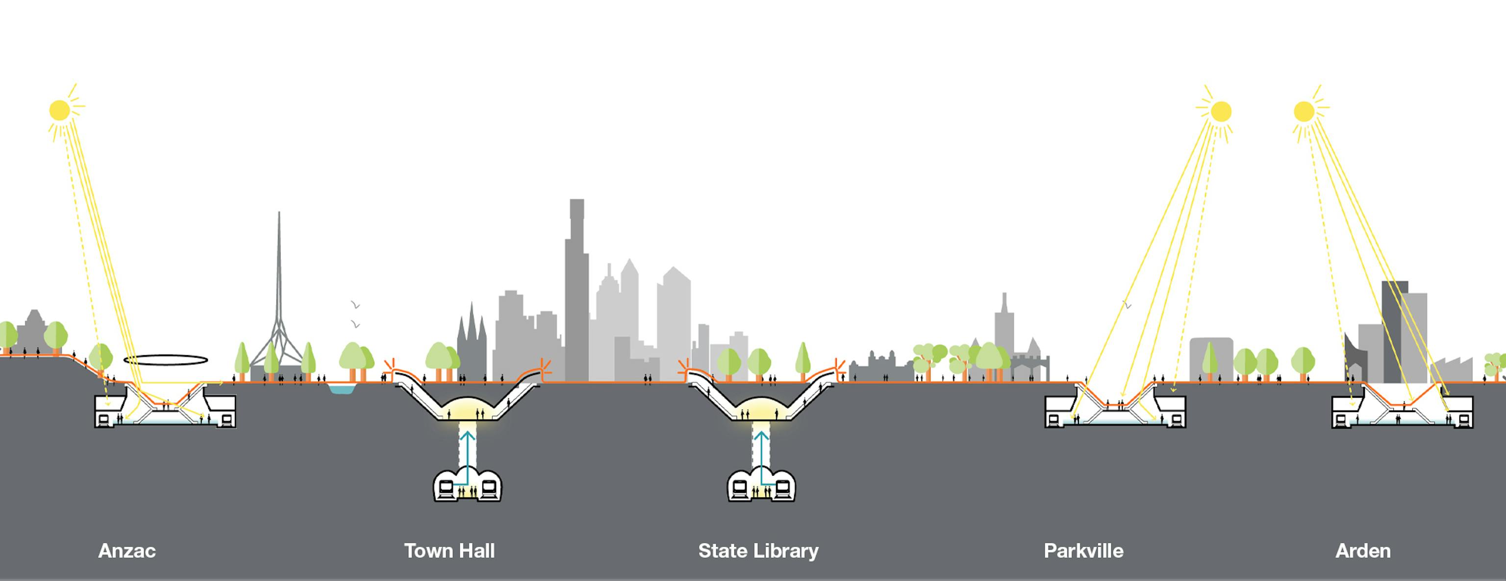 The Metro Tunnel links many important places in Melbourne and will change the way people move around the city. Not only from station to station, but also in and around the stations which are stitched carefully into each location.