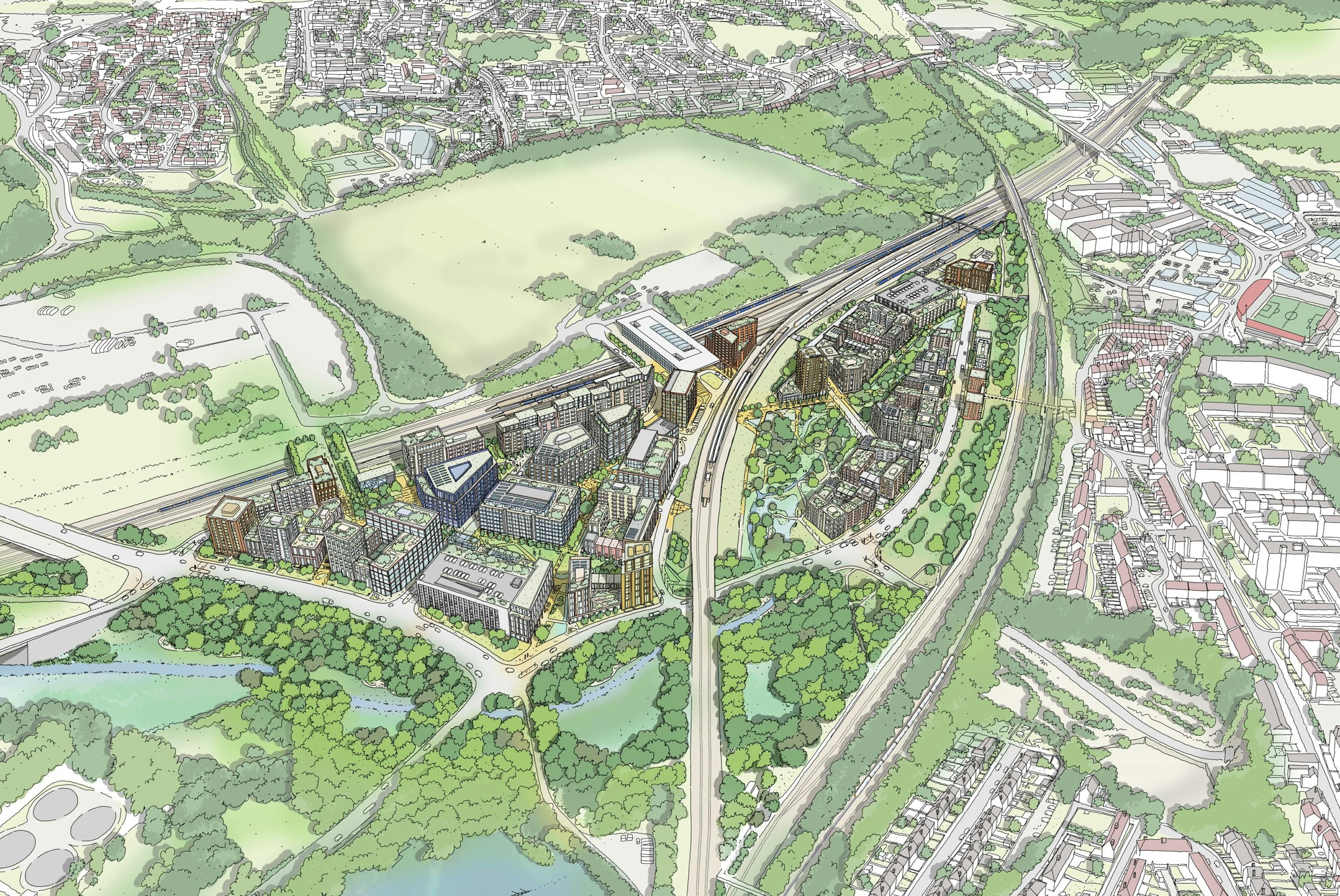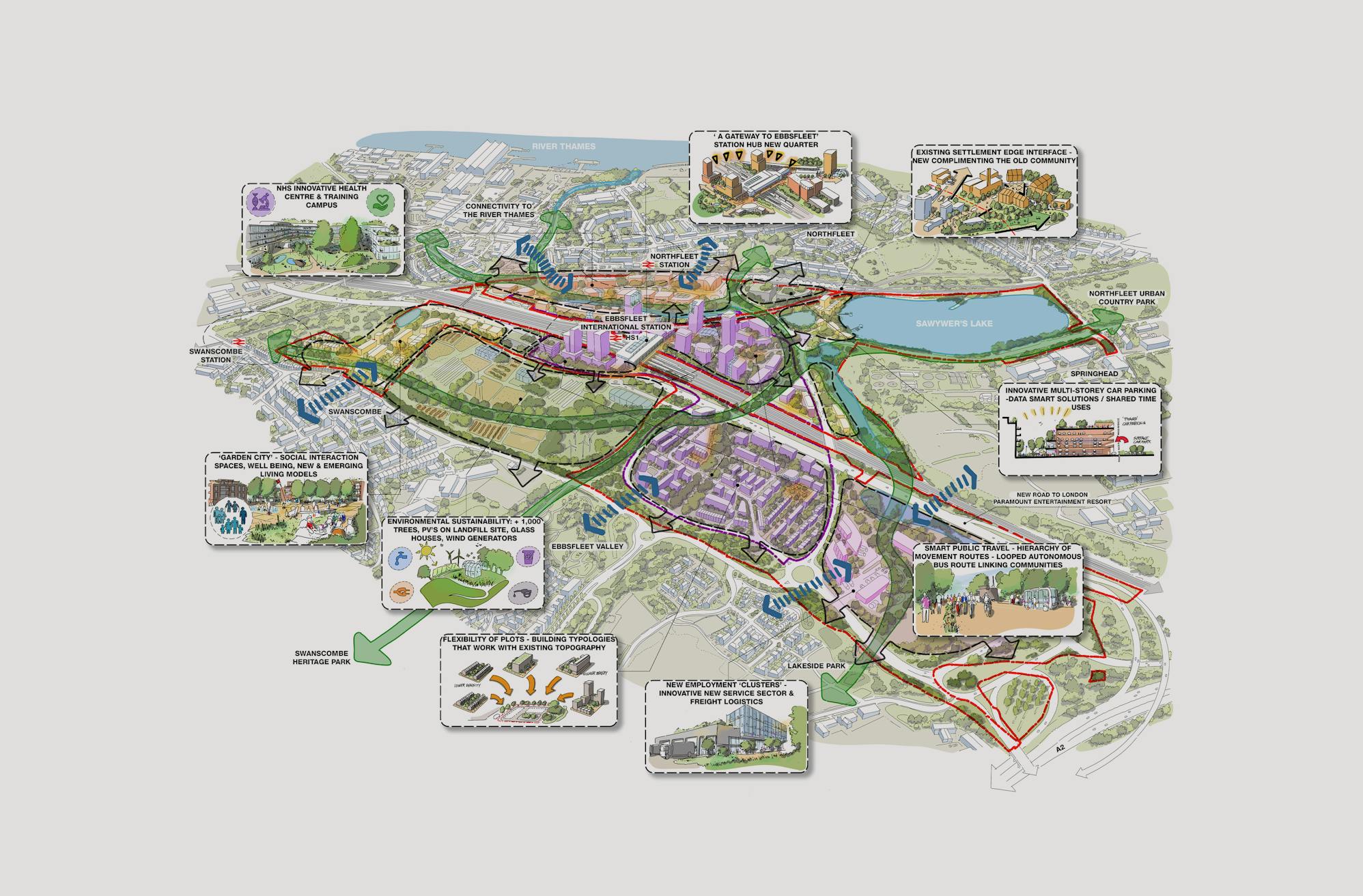 Ebbsfleet Central East OPA creates the framework for a thriving sustainable 34.86 ha centre, mixing new housing, commercial, and community functions around Ebbsfleet International station, with up to 2100 homes.