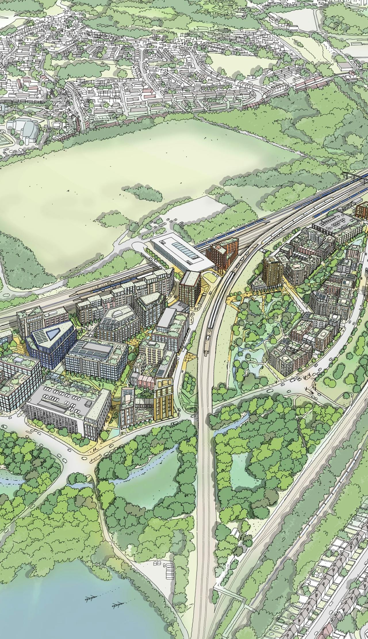 “This OPA provides an important balance of future flexibility with development certainty. A set of parameter plans define development zones and plots, with a range of floorspace proposed within each use class. We devised a ‘jelly mould’ maximum building envelope informed by key local and long views, which sets maximum development massing and heights. A commitment to green and blue infrastructure with over 30% open space is also embedded in proposals.”