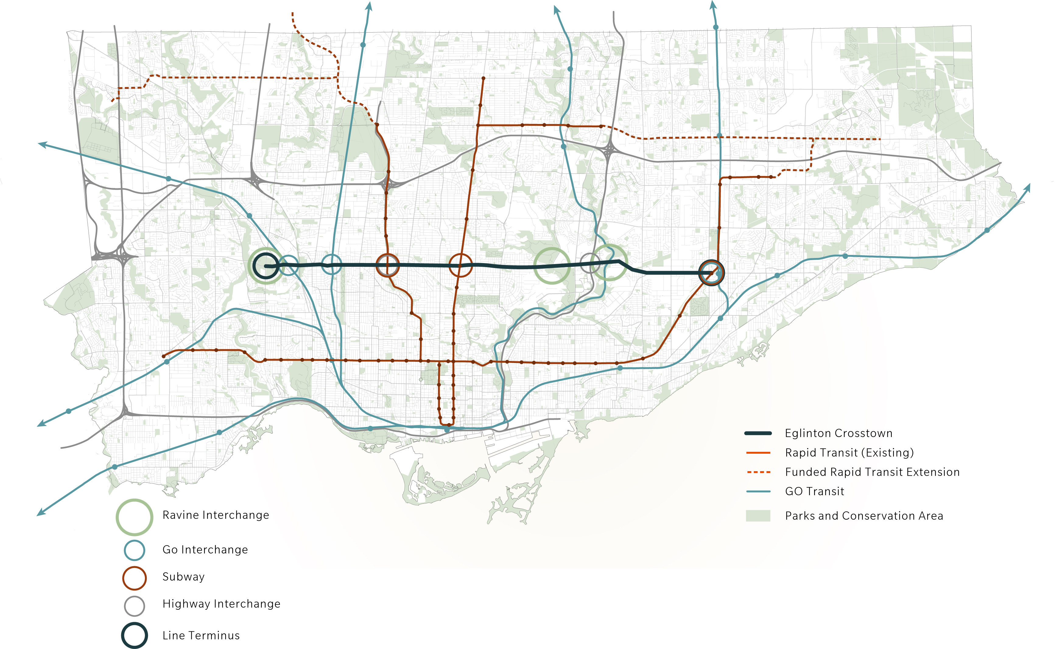 In the centre of Toronto, Eglinton Avenue binds together a series of diverse neighbourhoods. The proposed Eglinton Crosstown LRT will fundamentally change the balance of transportation along Eglinton, spur development along its length, and create a series of new place-making opportunities.